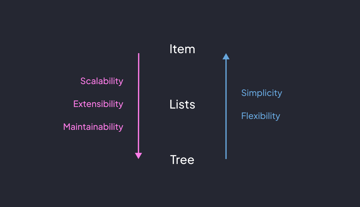 Then we go a step up and we have a list of items. You start introducing more complexity now because you have to manage the order of the list and/or it’s length.