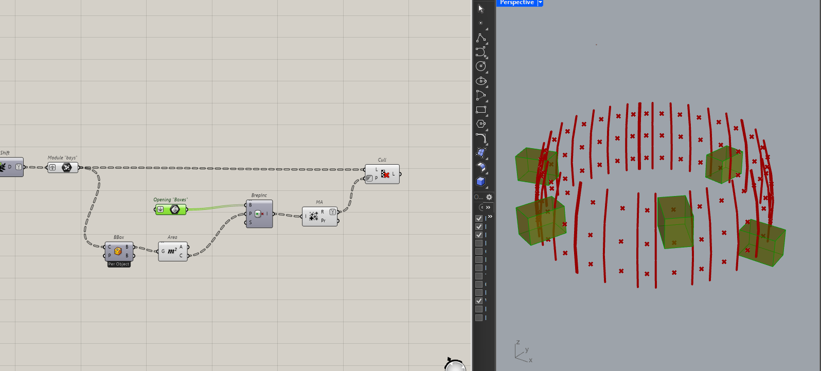 He looked relieved as I walked over. “I finally got it working, but it doesn’t work for the whole model” he said, zooming into Grasshopper. “At least, all they have to do is copy this block of code for every wall. It’s still better than modelling it manually, I guess”
