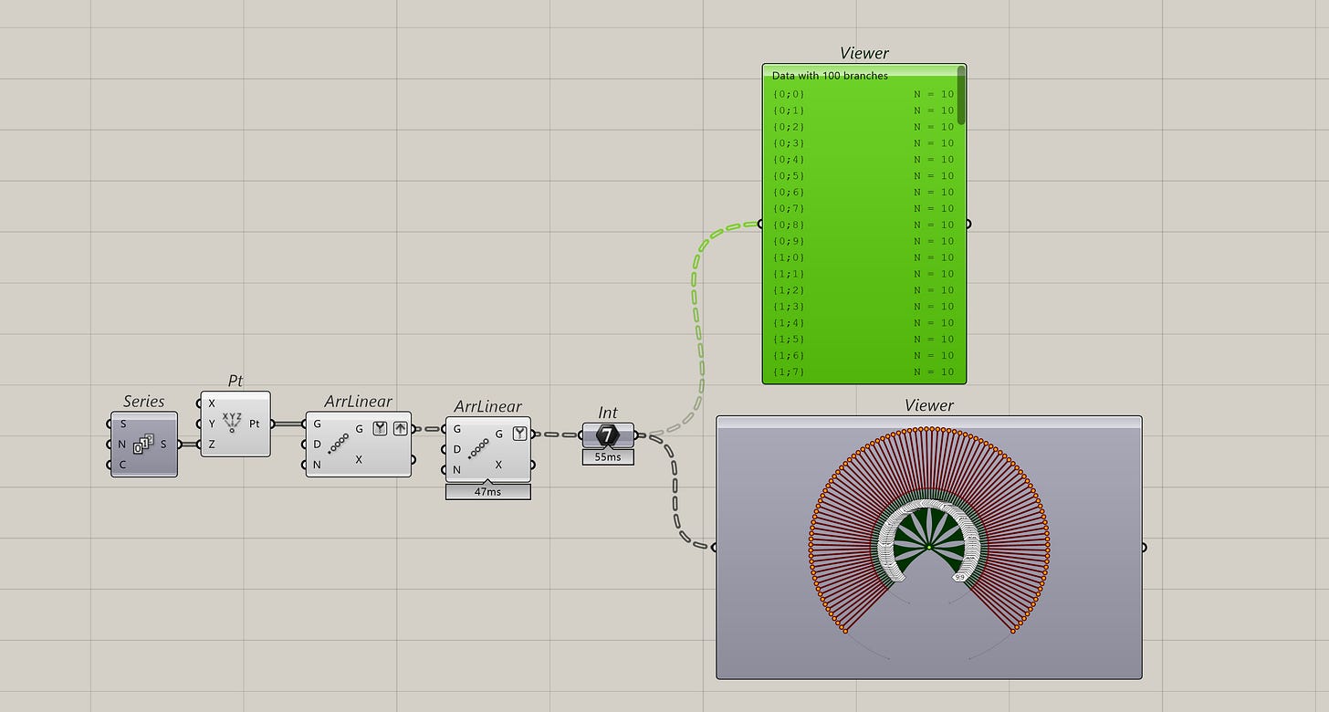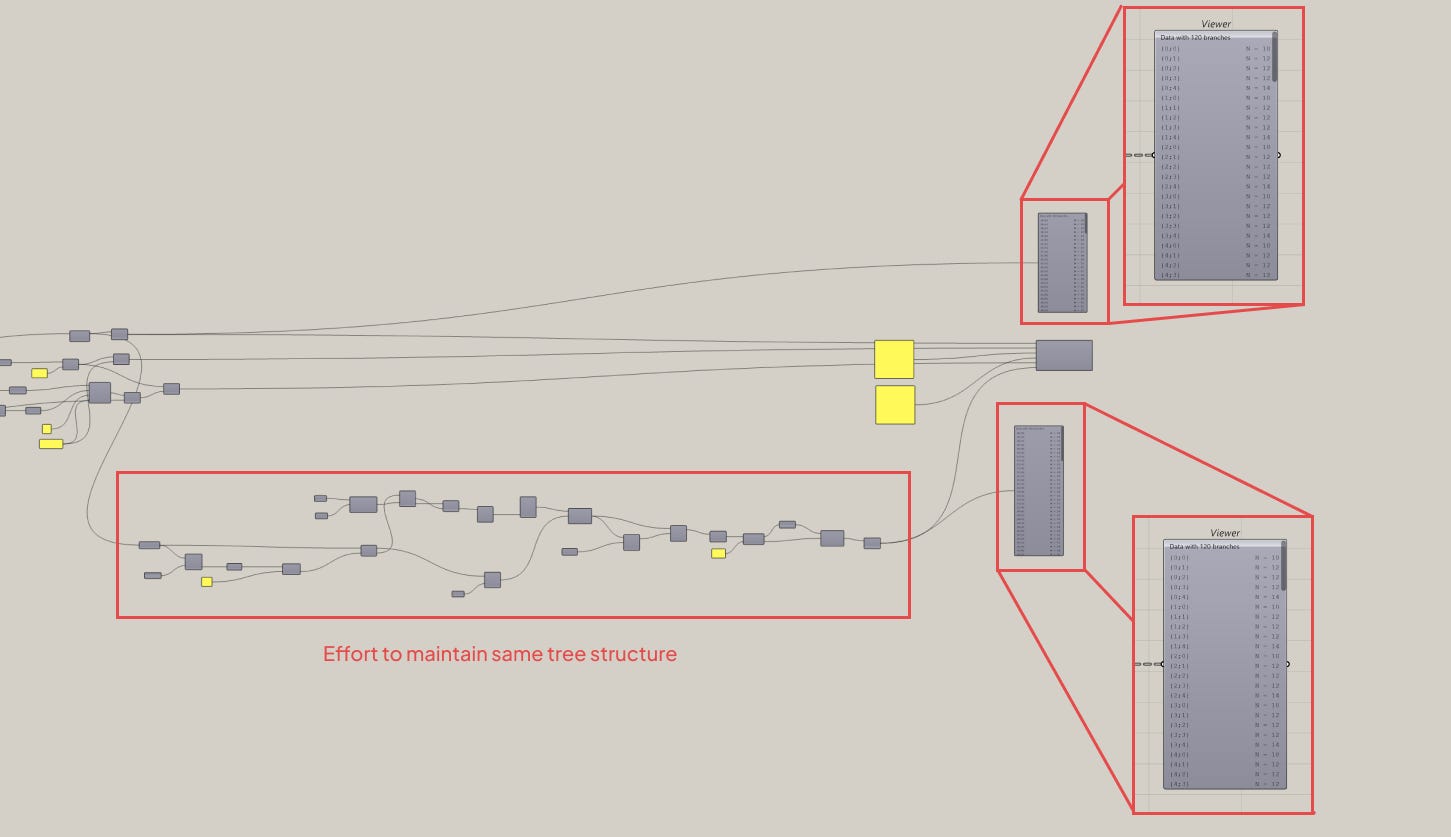 Once you start paying attention to your data structure, you’ll realize that most “weird Grasshopper bugs” are actually data structure problems. More often than not, it’s because the data no longer conforms to the original setup of the script. With time and experience, you’ll start predicting these shifts and creating your trees in ways that make your scripts more robust.