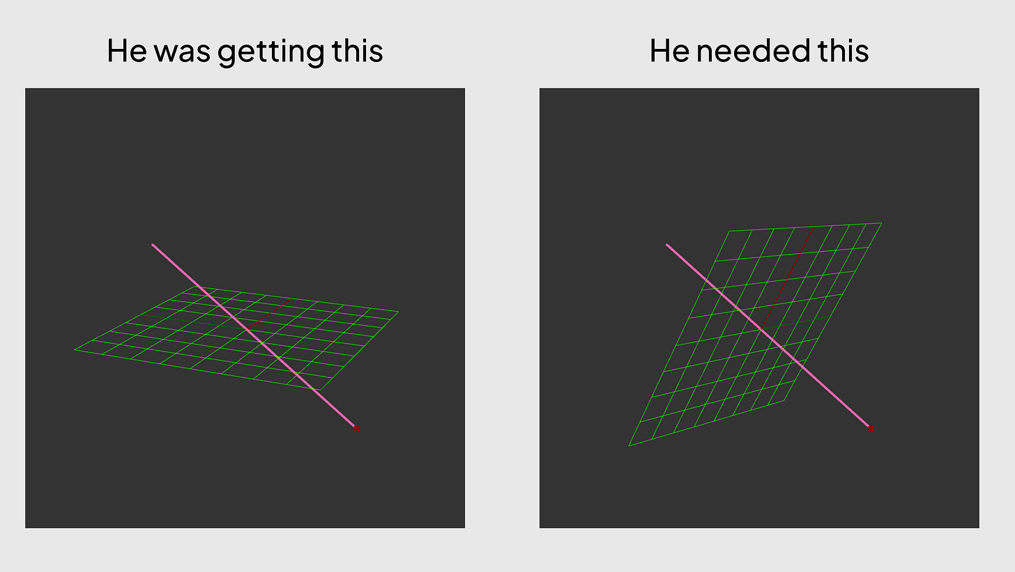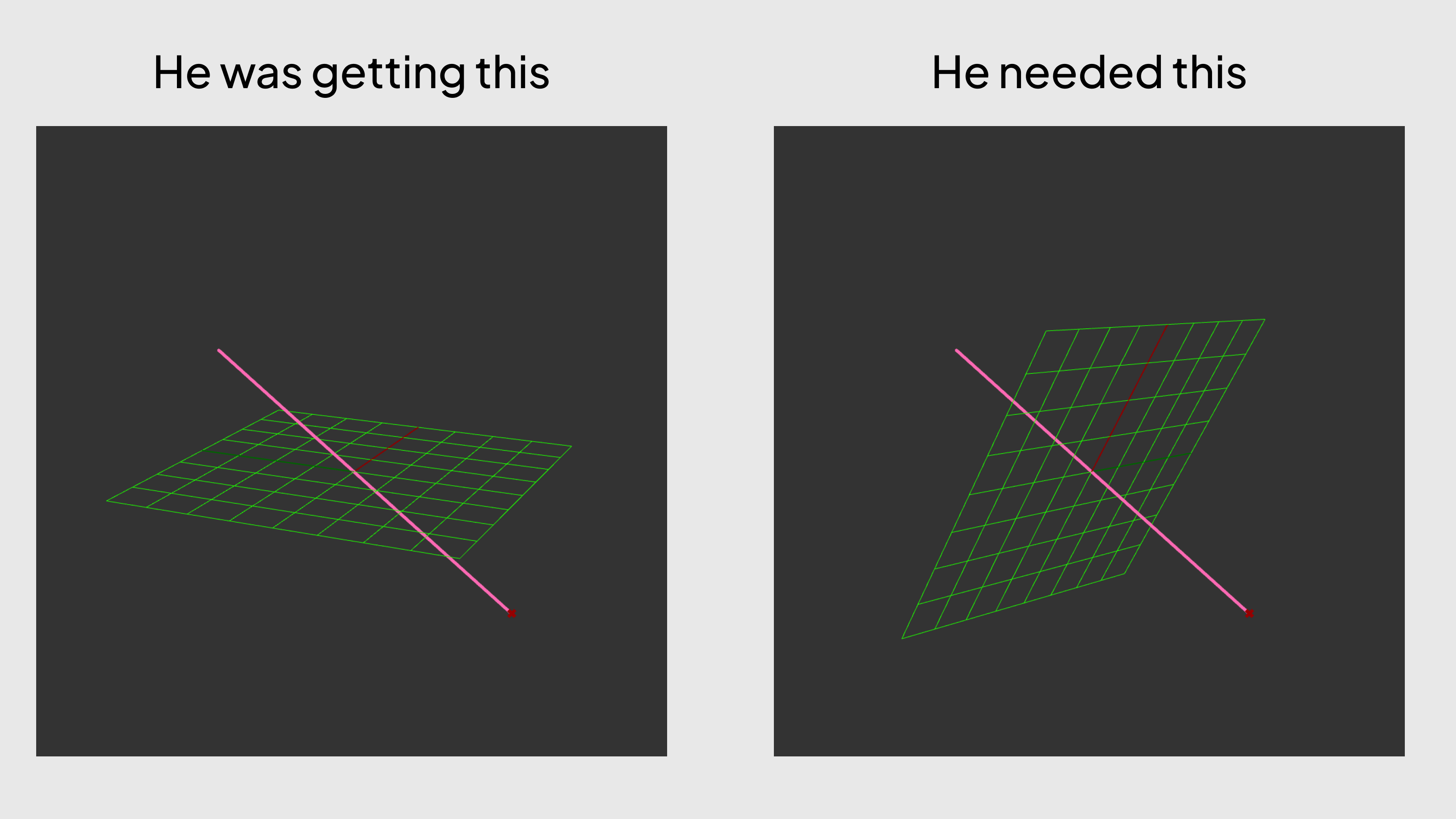 Just the other day, I watched someone struggle to create a plane in Grasshopper. The plane kept coming in flat, even though Peter wanted it at an angle. It needed to align with a diagonal line in the model.
