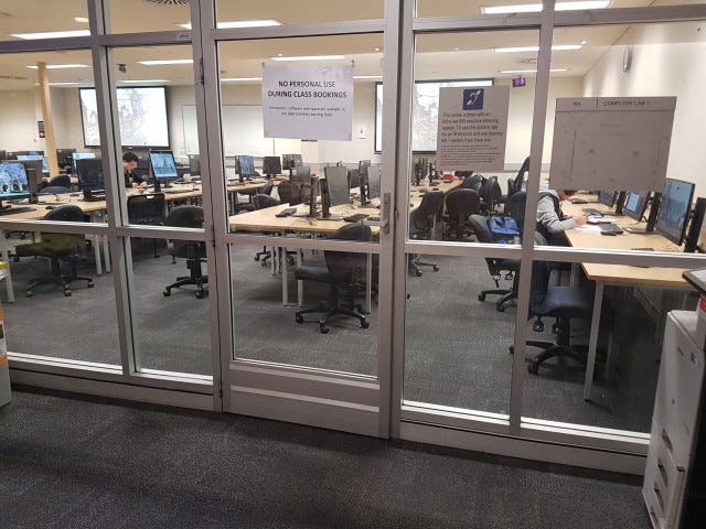 The tutorial rooms are always cold, something about keeping the computers and servers at the right temperature. I make my way to a computer and sit down.