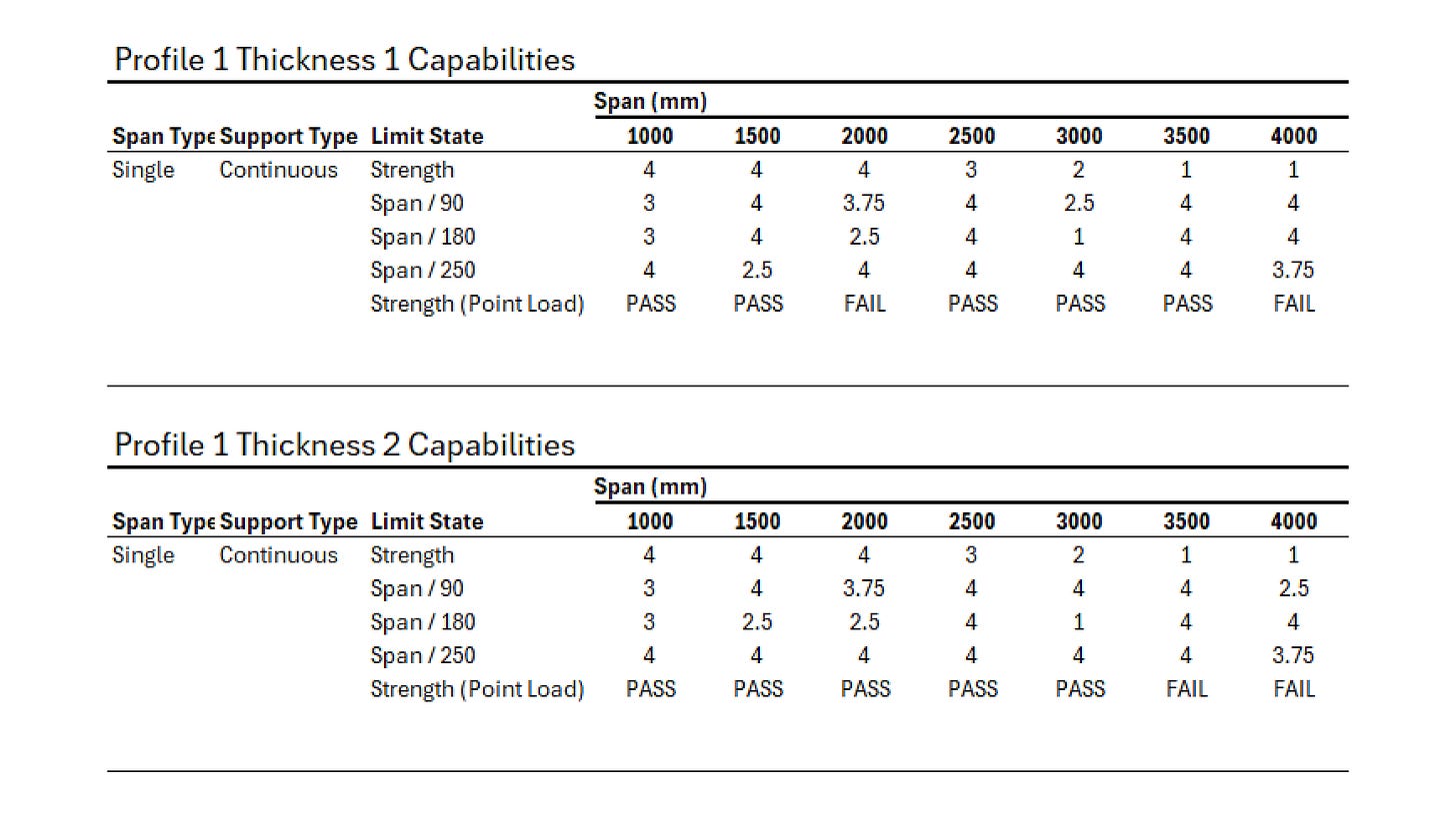 The client wanted to produce a load table for some roofing sheet that they manufacture. It involves analyzing 11 wave-like patterns for 3 types of parameters. Length, thickness and perforation area. So, that meant 8 5 5 * 5 = 1000 models to be created, analyzed and processed to produce the tables. It’s a classic computational problem.