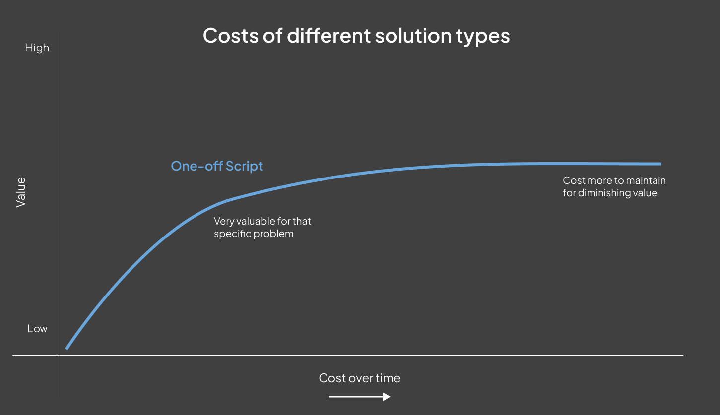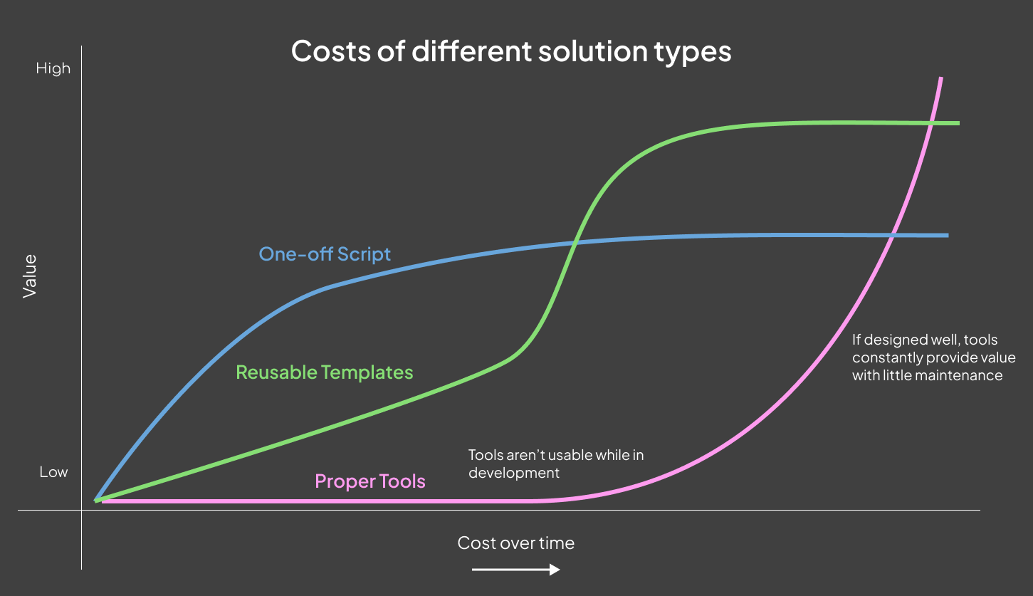 And sometimes, a fast script is the right answer. But even when you're moving fast, being intentional means you’re less likely to confuse a band-aid for a real fix. If you can get even rough estimates for how many people might use your solution, how often, and how much time it saves, you’ll have a much better sense of whether it’s worth the investment.