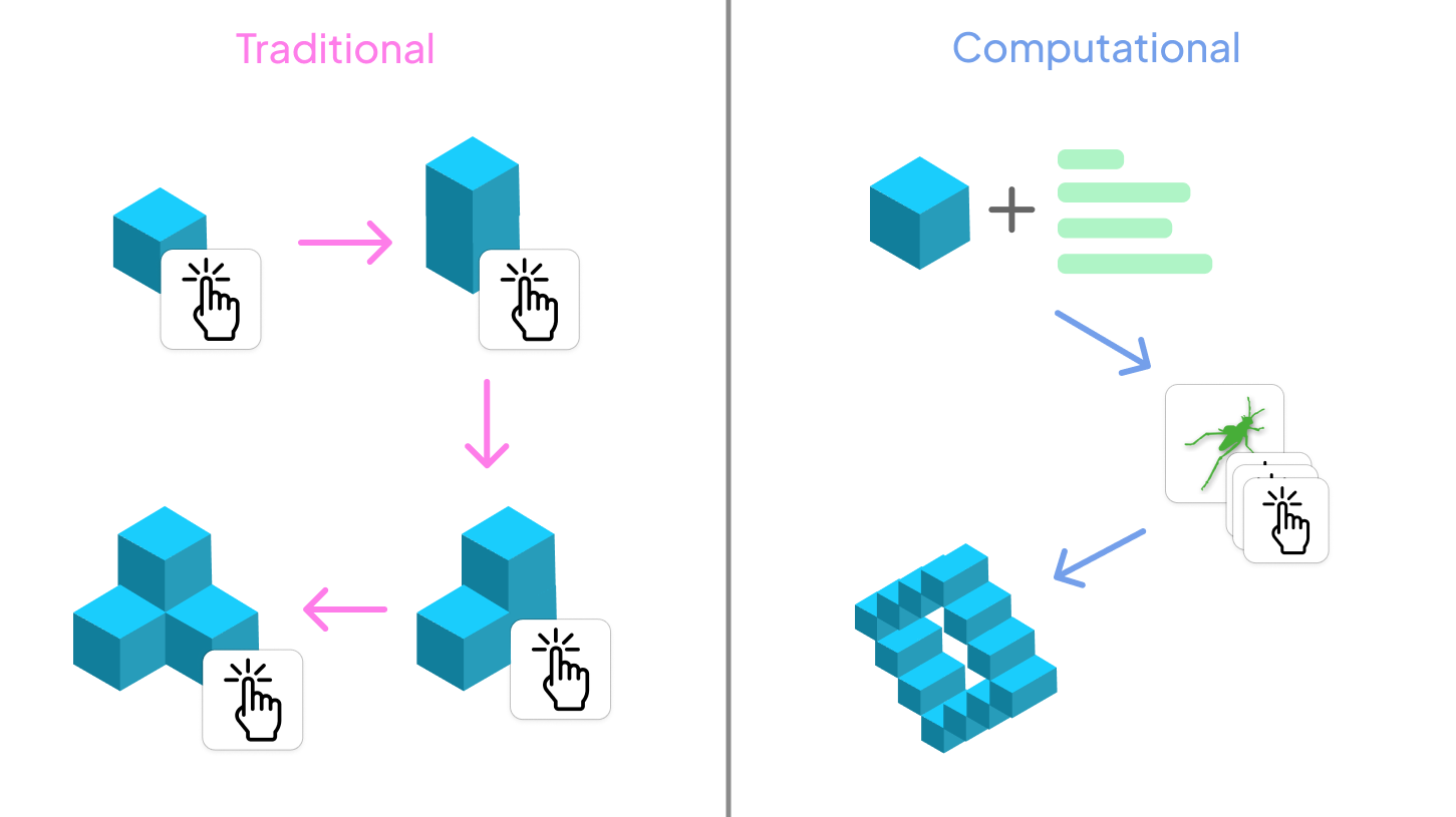 Computational: Builds the model by prescribing steps using algorithms and parametric inputs, allowing for automatic generation and adjustment of the model. The model is always built the same way because the prescription of steps is self-documenting. Requires a different level of skill and someone that knows how to prescribe those steps.