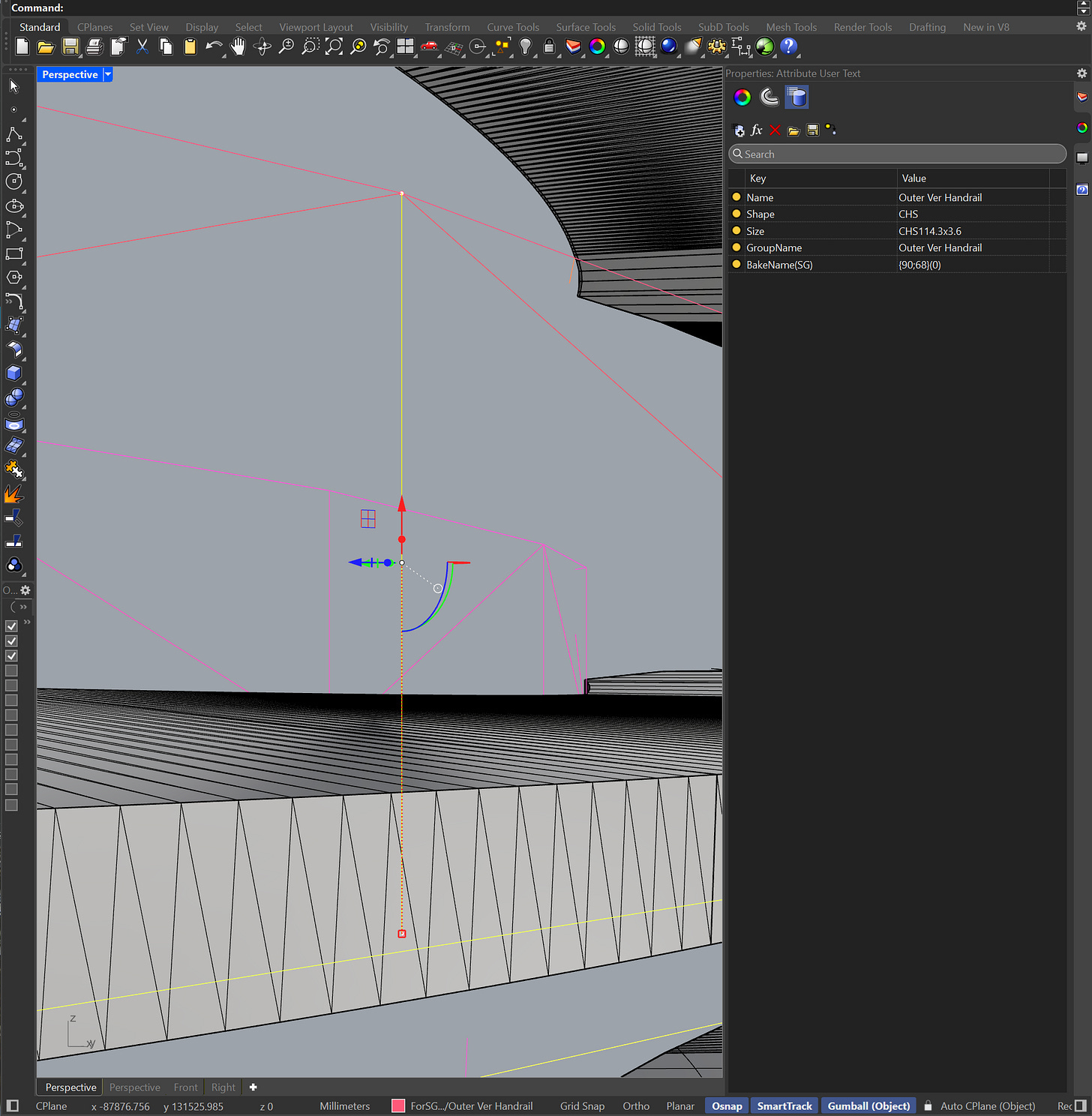 Elefront attributes let you define the layer, the colour, the material, etc that your geometry should have in Rhino. They are also what let’s you attach any metadata.