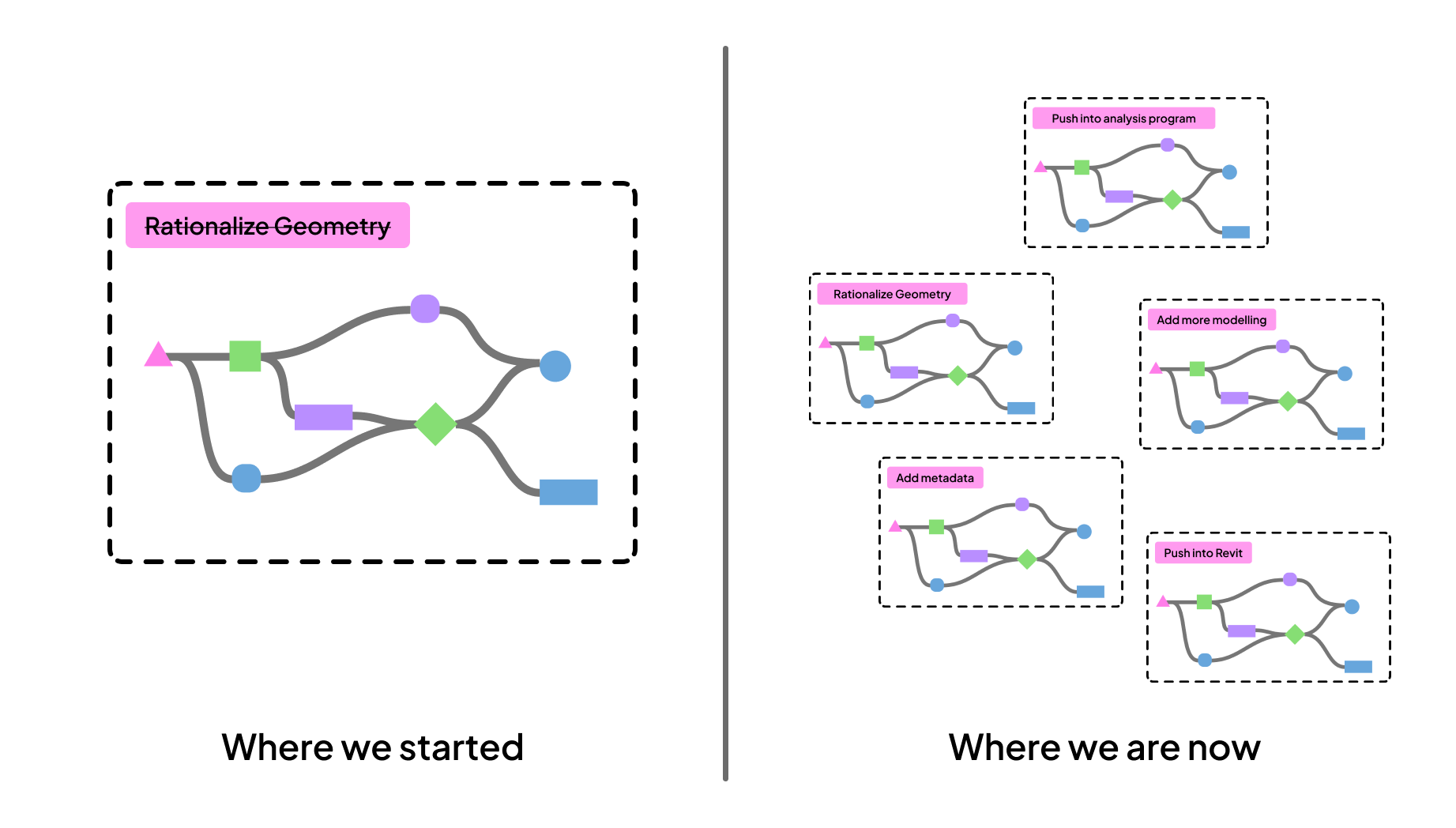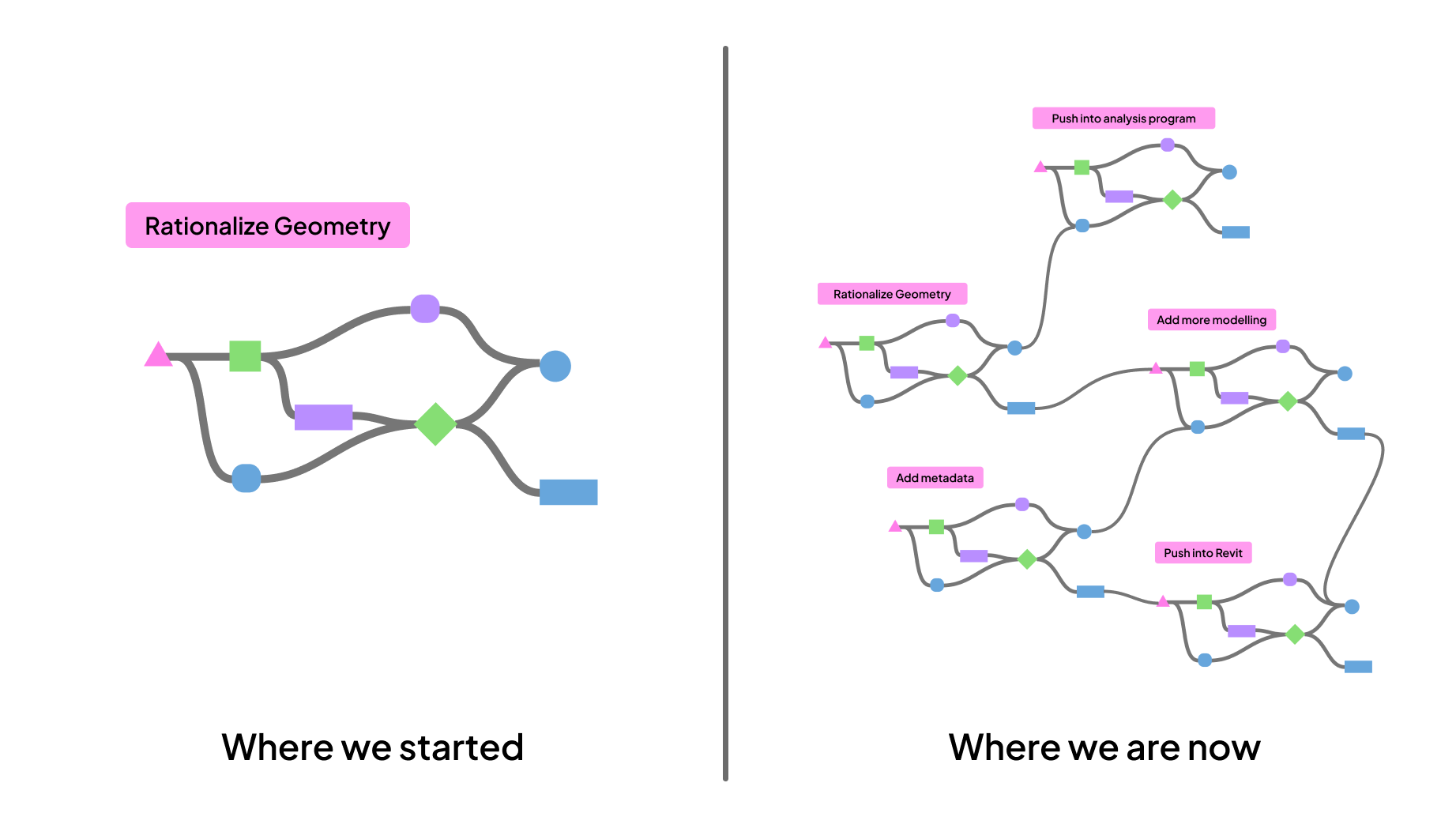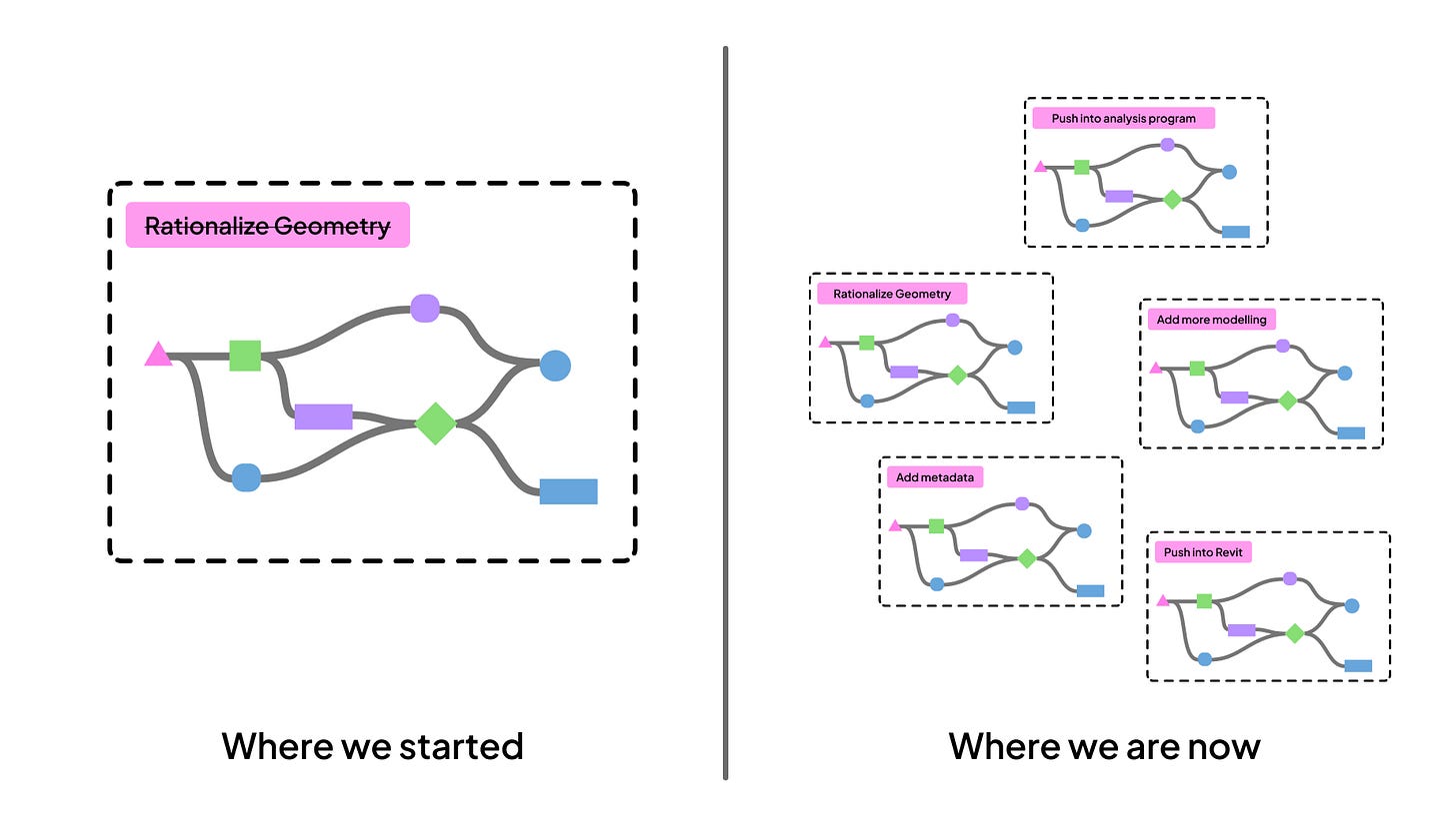 Whether it’s a Grasshopper/Dynamo script or a “properly” developed plugin or program, most solutions suffer from scope creep.