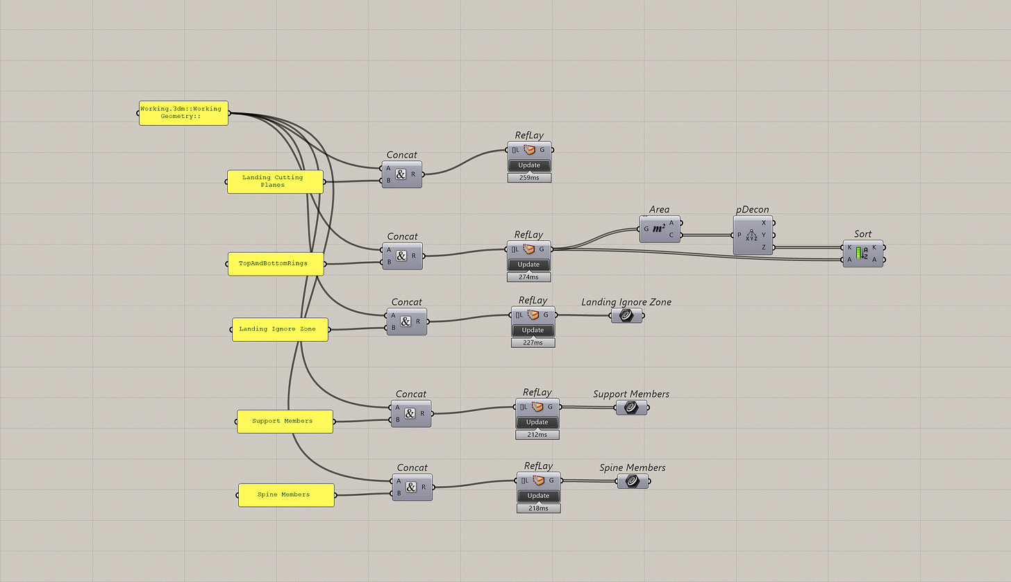 Well... that is until the client makes a change in the geometry and I have to go diving in this sea of components to find out what went wrong.