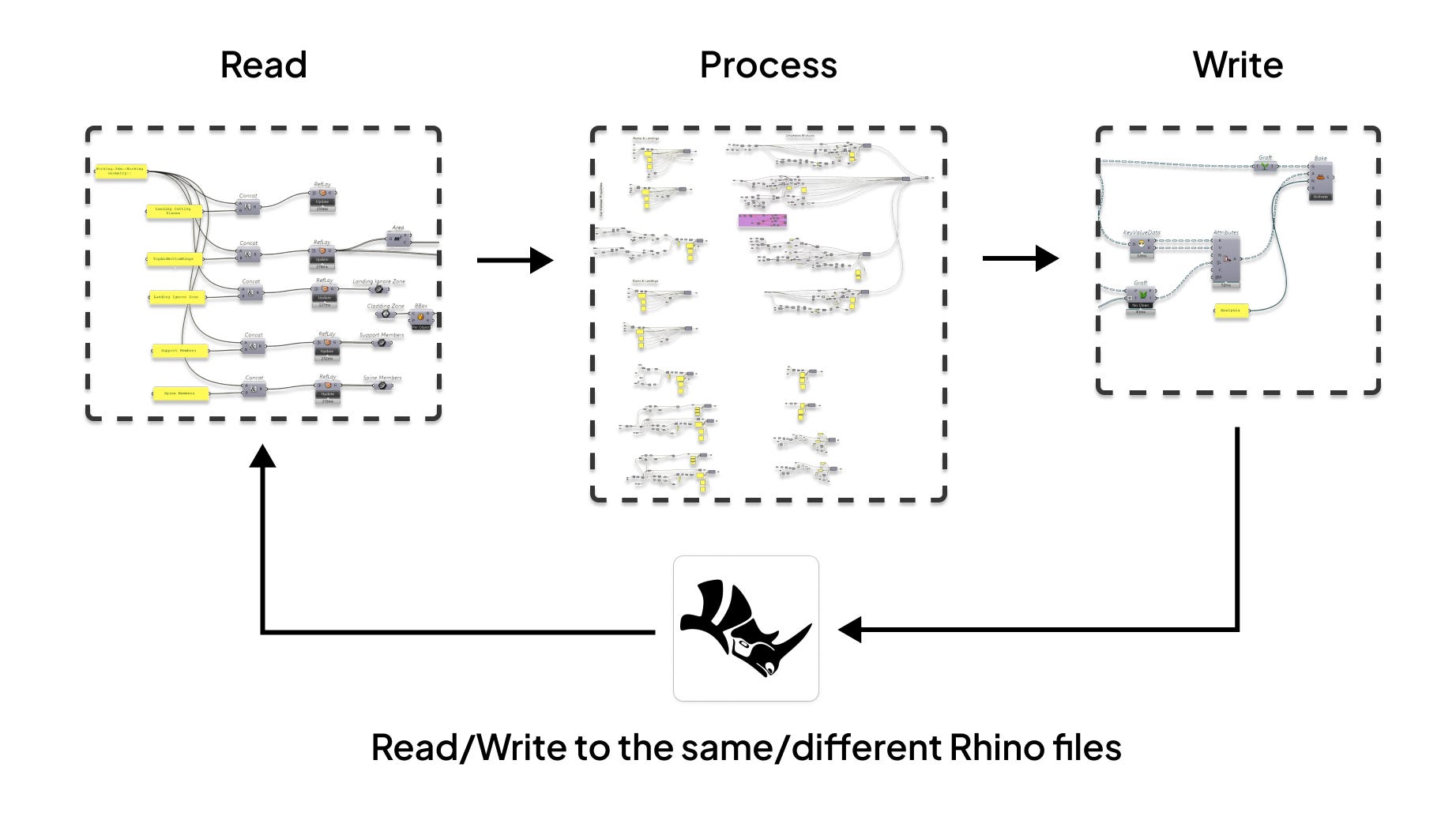 Well, it’s actually quite simple, you have two parts. Reading from Rhino and writing from Rhino.