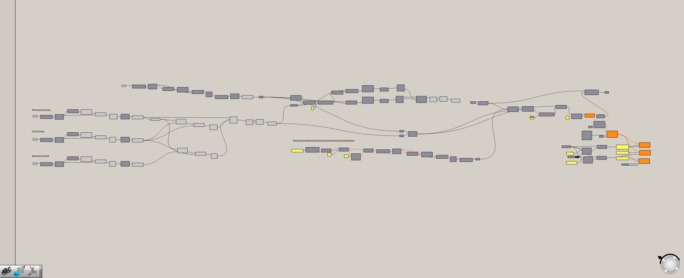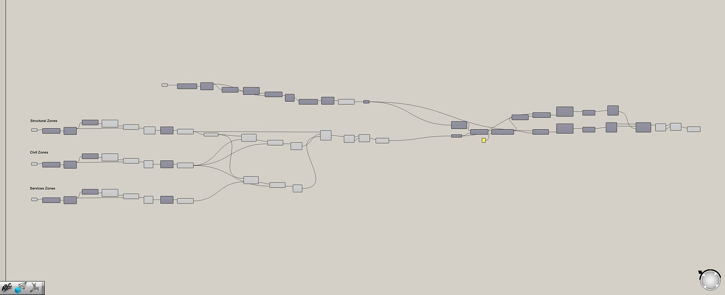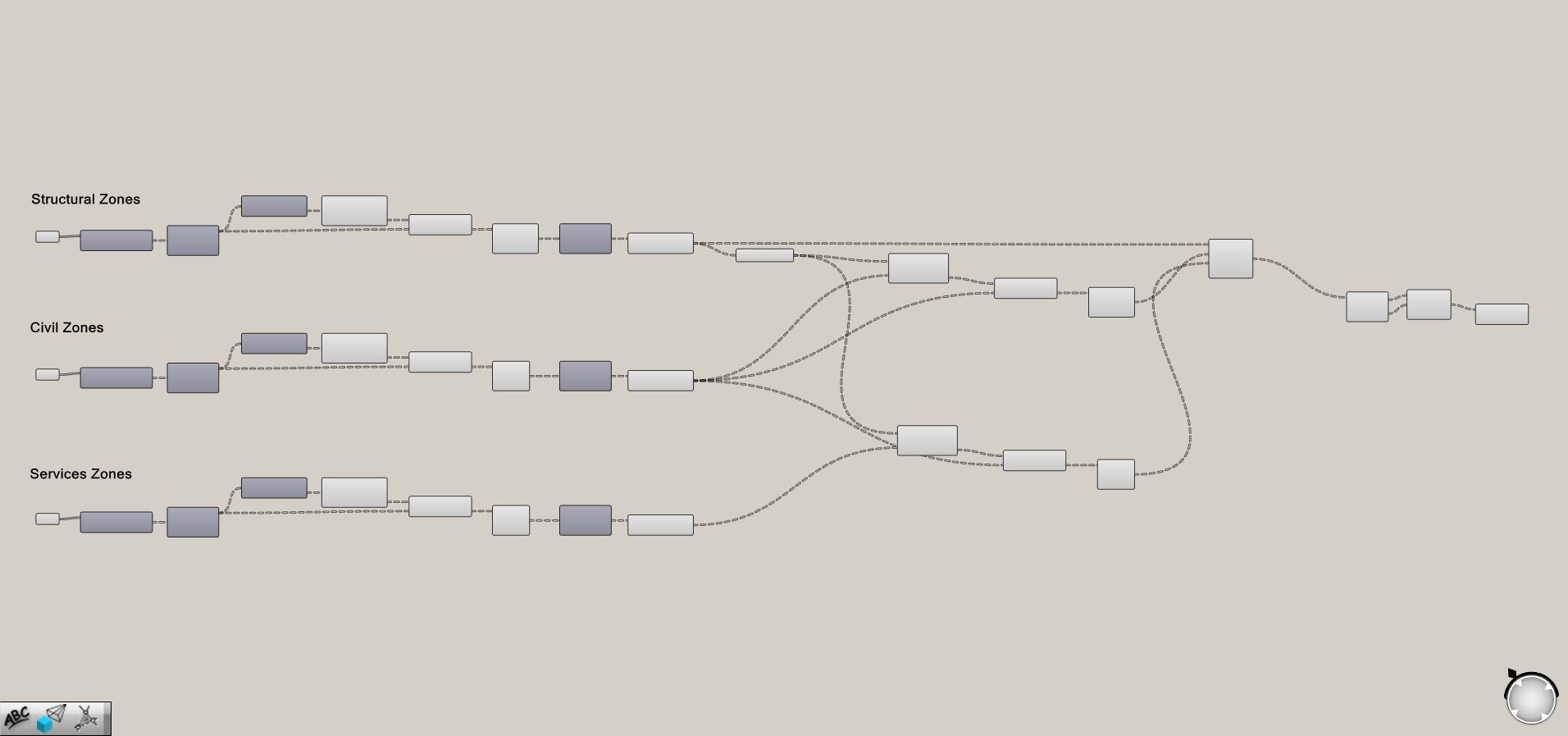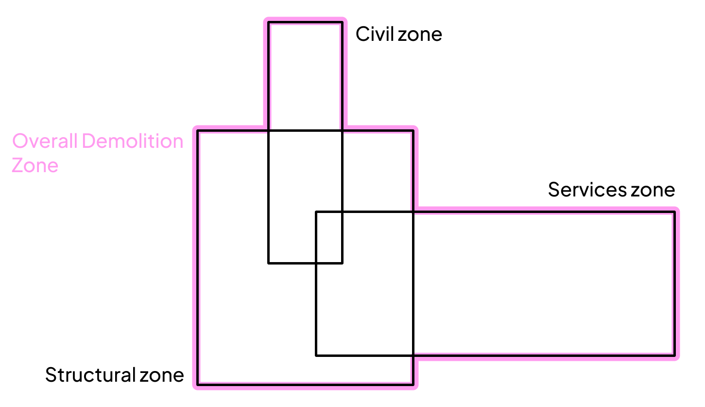 "Demolition zones", he replied, eyes glued to the screen. These are areas that have to be agreed on by everyone - structural, civil and services. Each week, they come to me with all their areas and in return I give them back a consolidated zone.