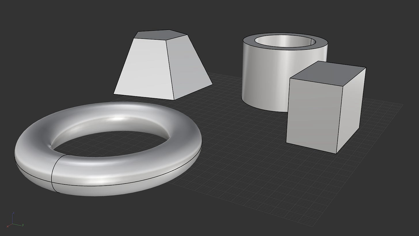 In contrast, solid modelers like SolidWorks or Unreal Engine use a different system called Constructive Solid Geometry (CSG). These programs build objects by combining simple shapes like spheres, boxes, and cylinders. Since those shapes are always closed, you don’t need to worry about naked edges or missing faces. Using primitive shapes at the start also makes CSG more robust when it comes to Boolean operations.