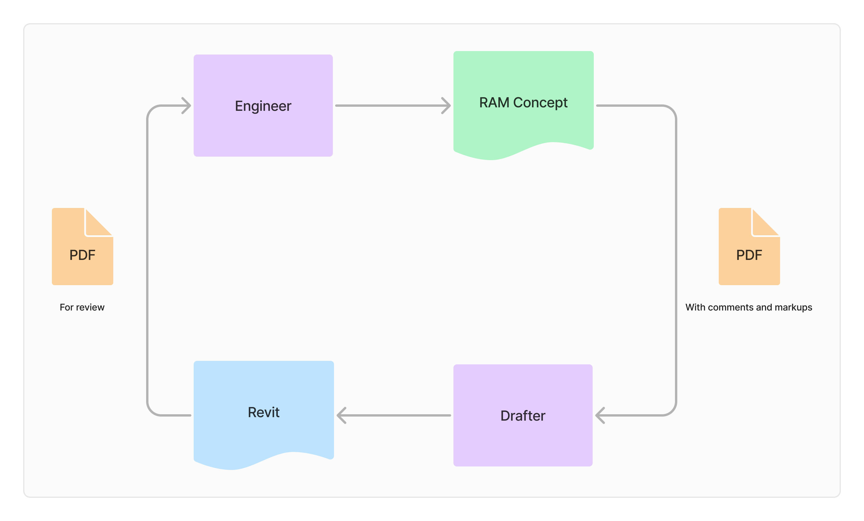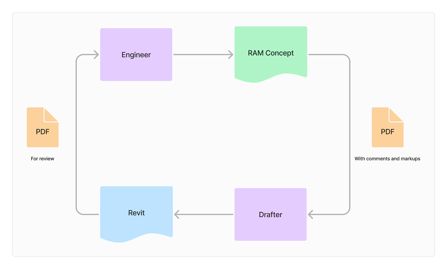 Their current workflow was painfully manual. Engineers would design their PT in RAM Concept, generate detailed PDFs showing the tendon layouts, then hand these over to the drafters. The drafters then take these PDFs and meticulously place each element in Revit then produce the construction level drawings for the engineer to review. When the engineer reviews, they would circle in red and comment on the drawing itself for the drafters to change in Revit. Once those changes are made in Revit, the engineer has to also make those changes in their RAM model.